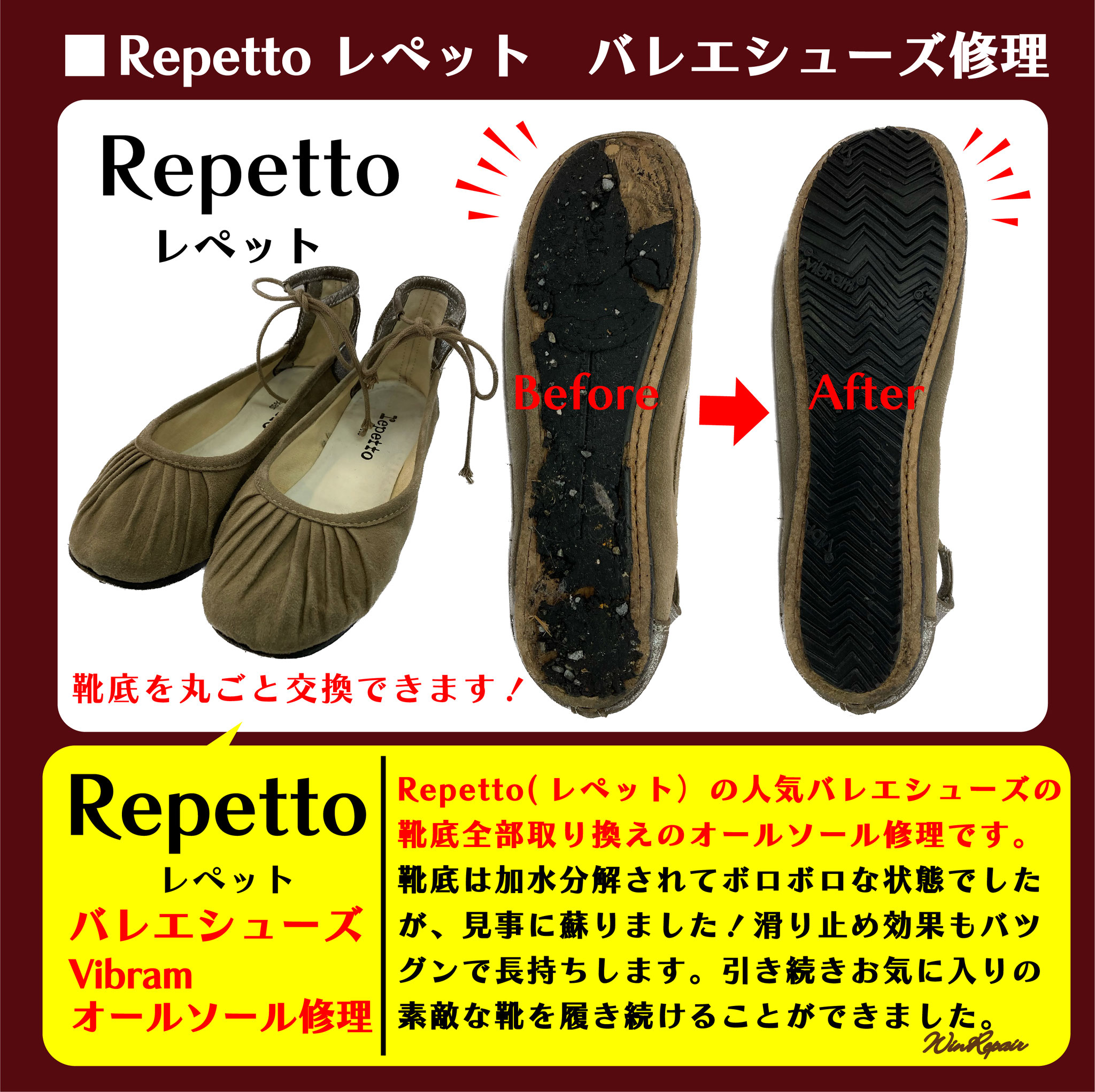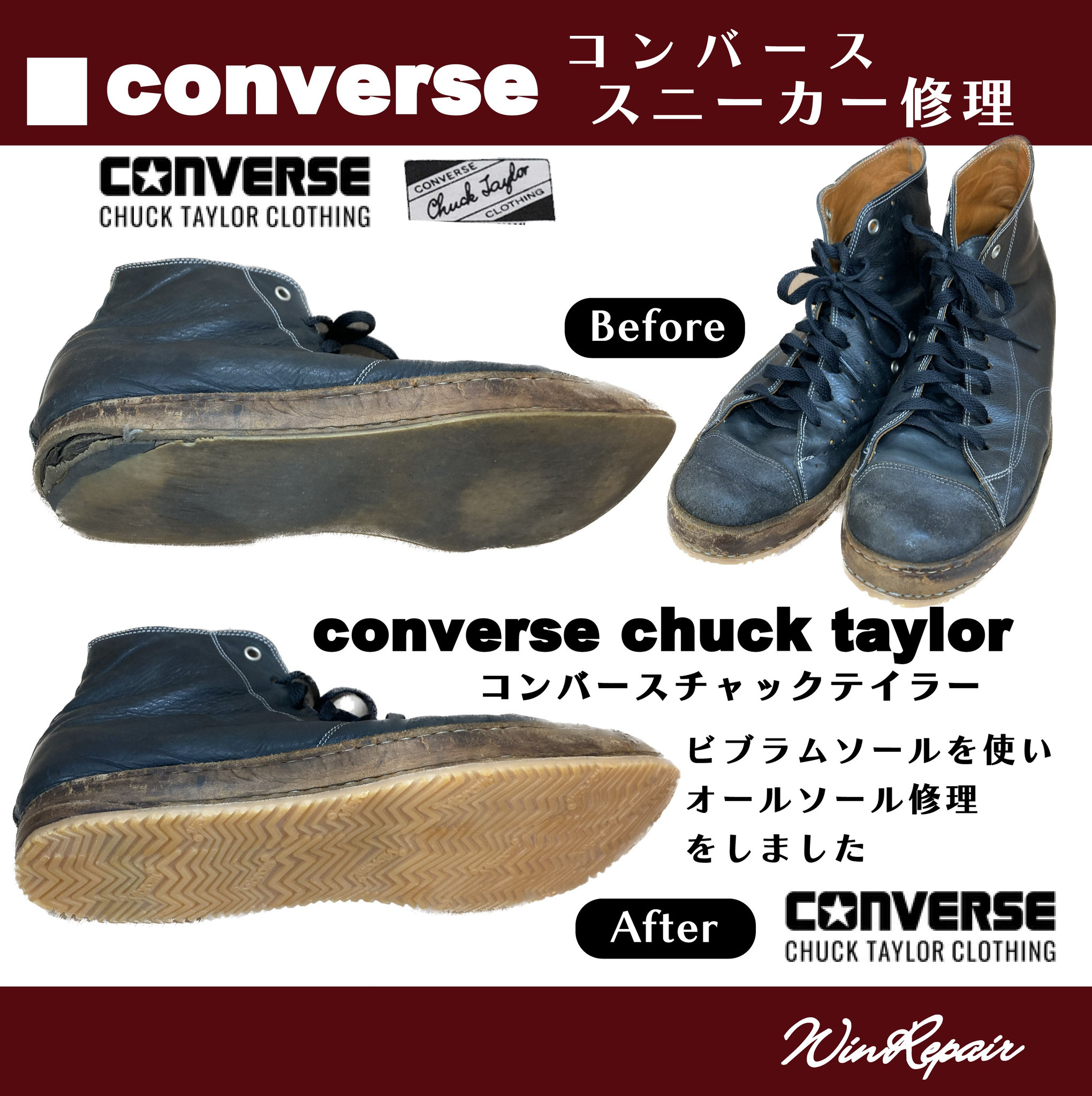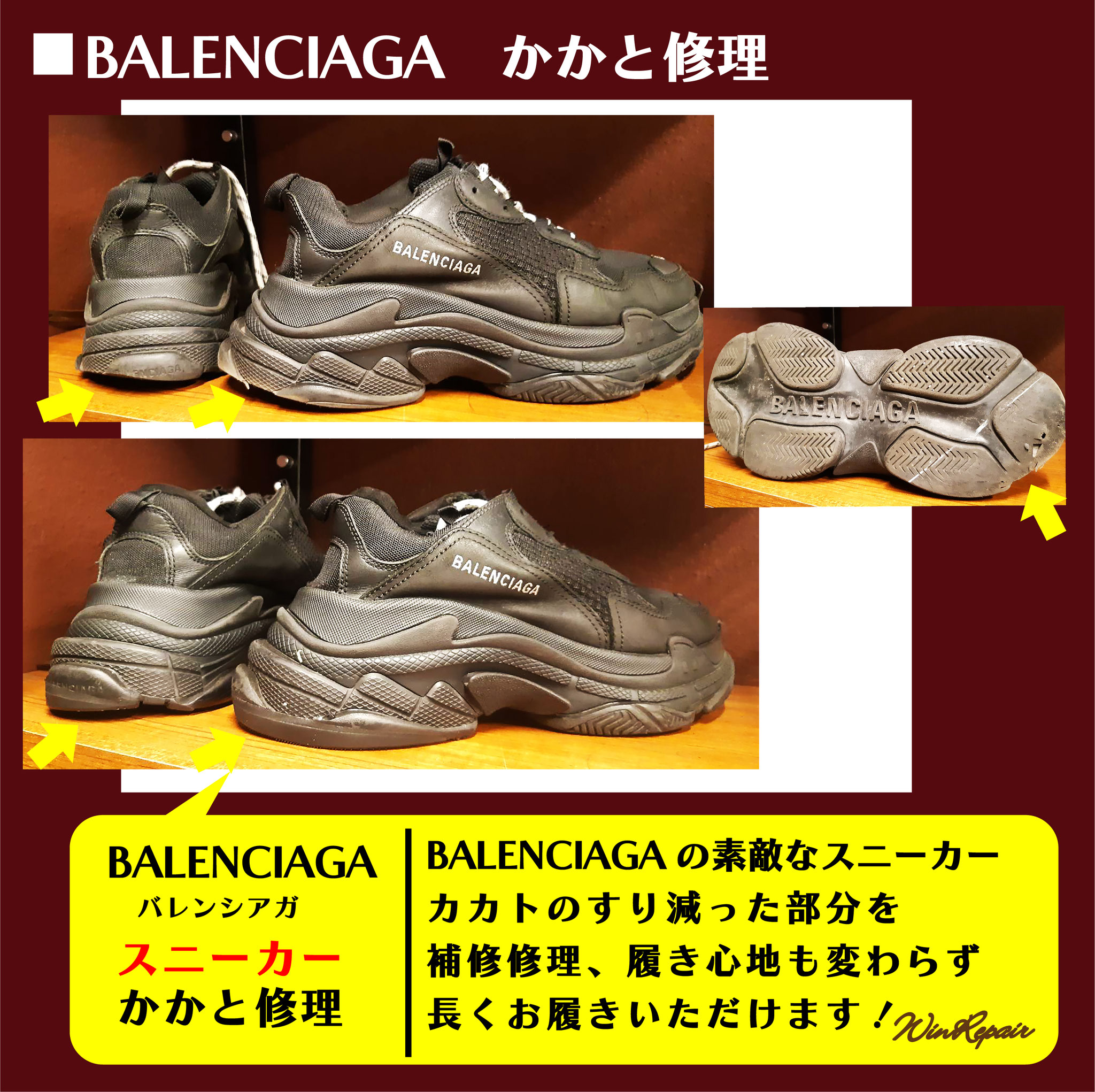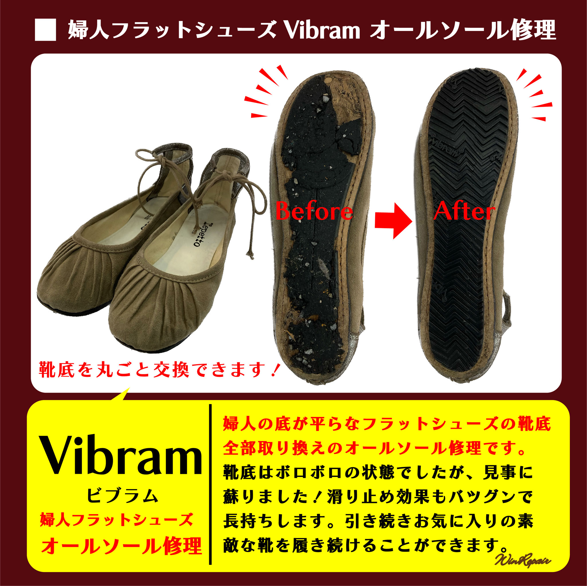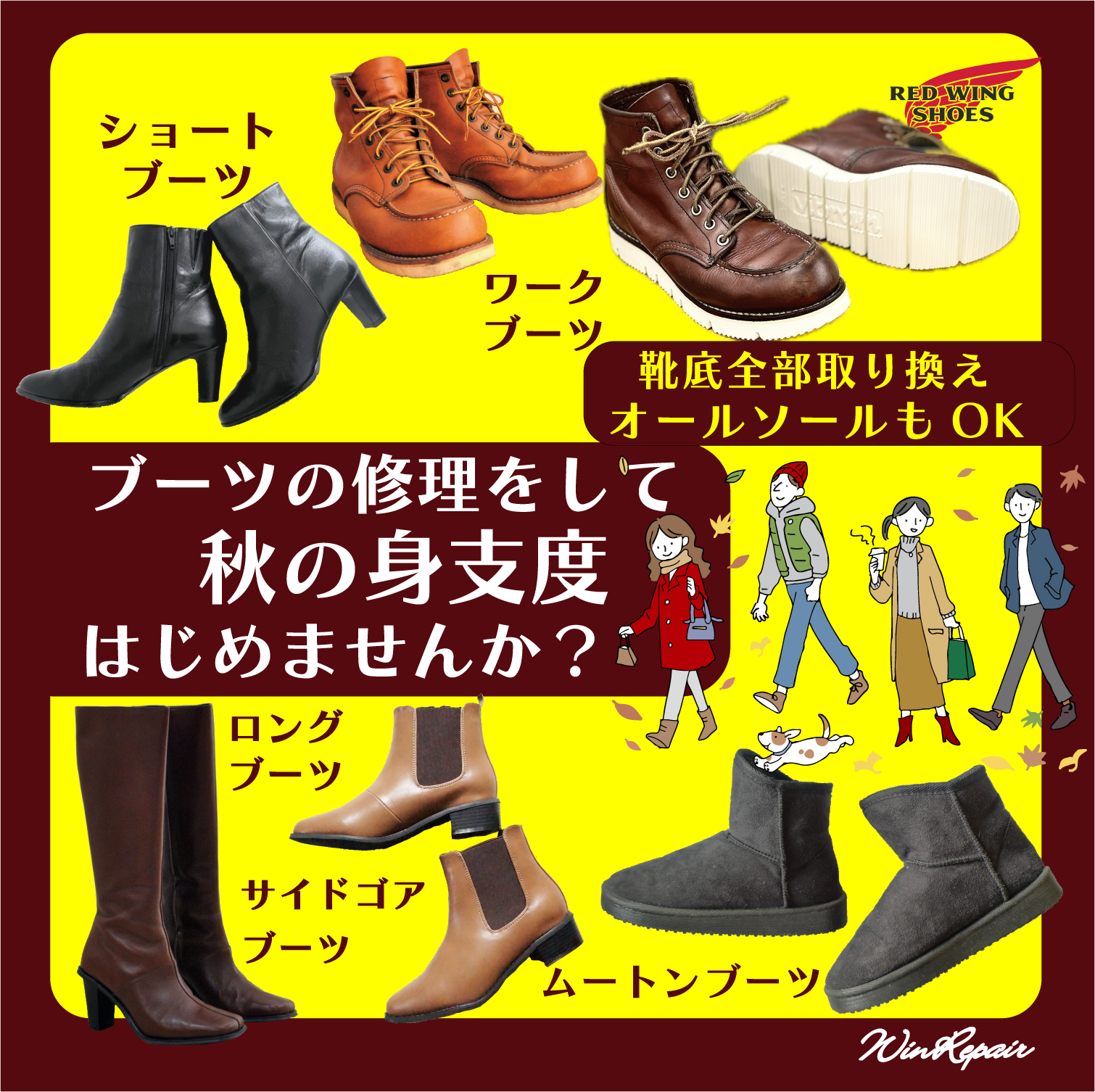 ウィンリペアは「靴」の修理をはじめとして、合カギ作製、カバンの修理、時計の電池交換など様々なサービスをお客様にお届けしています。